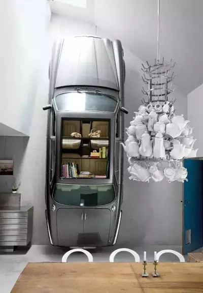 用汽車做書架、當壁燈