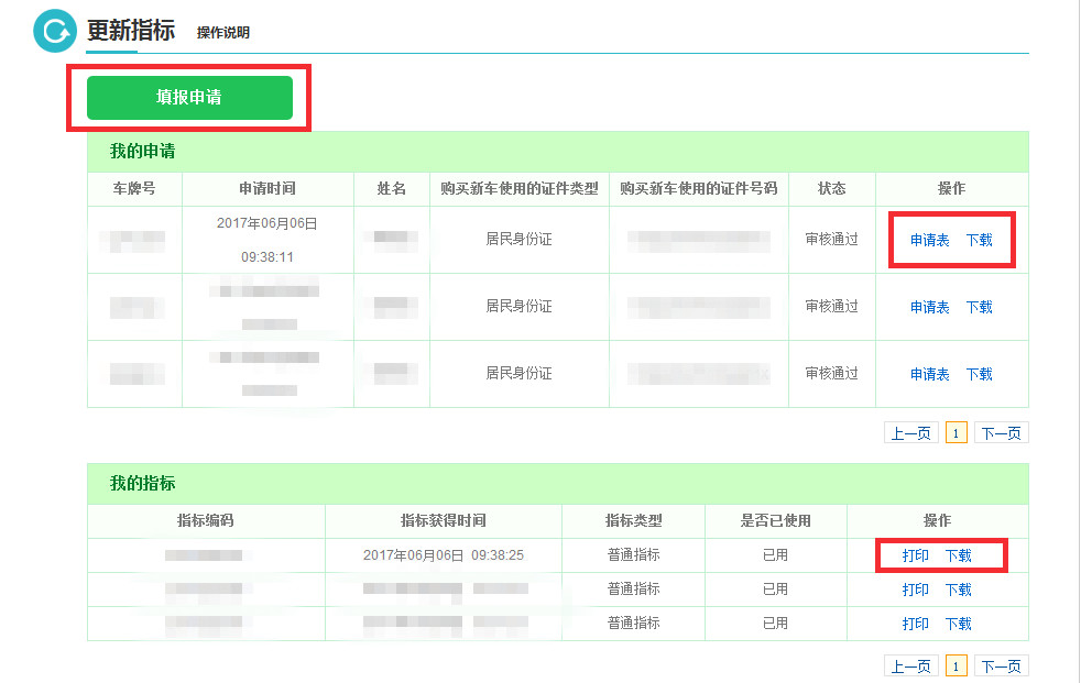 在“我的指標”欄點擊打印或下載,最終更換車輛是要拿紙質的指標